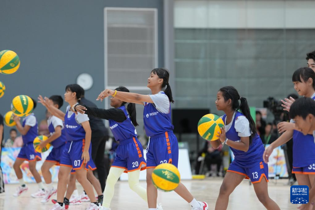 11月9日,来自云南省孟连县勐马镇中心完小的学生李小梅(中)在训练课上。
