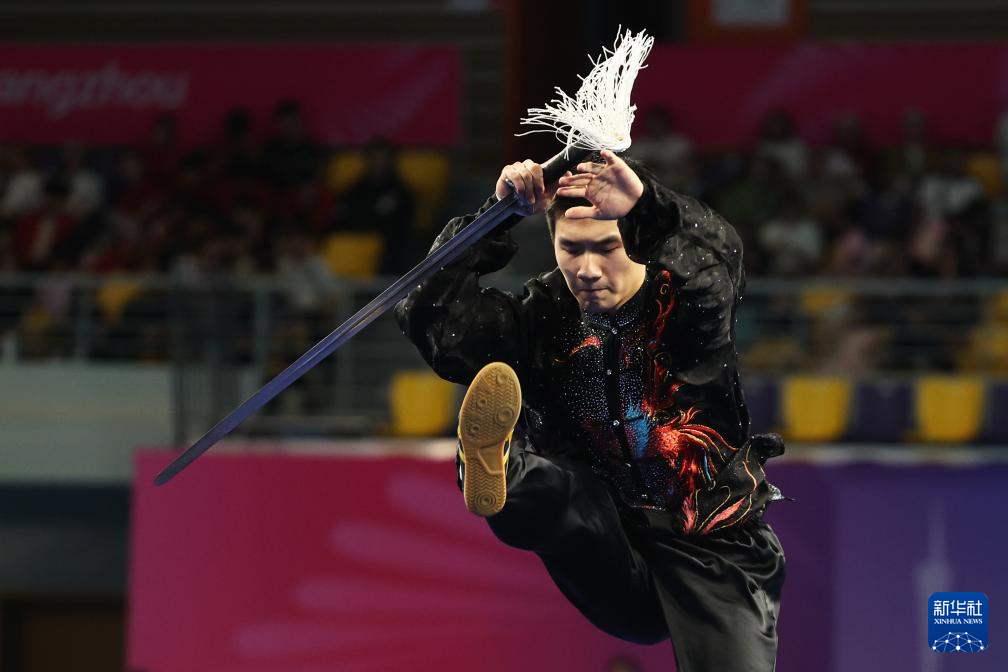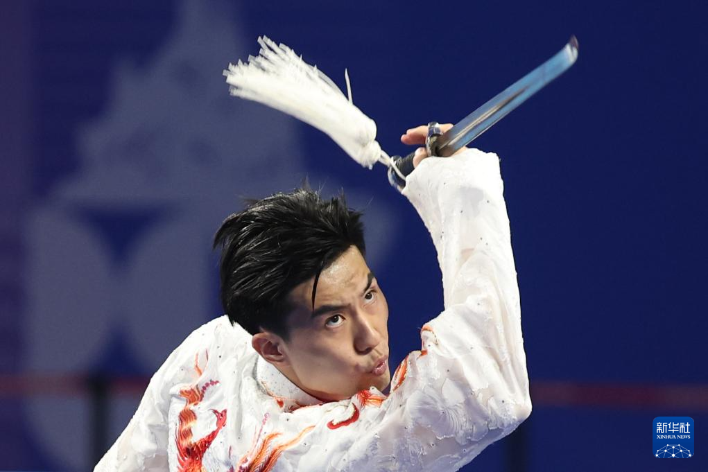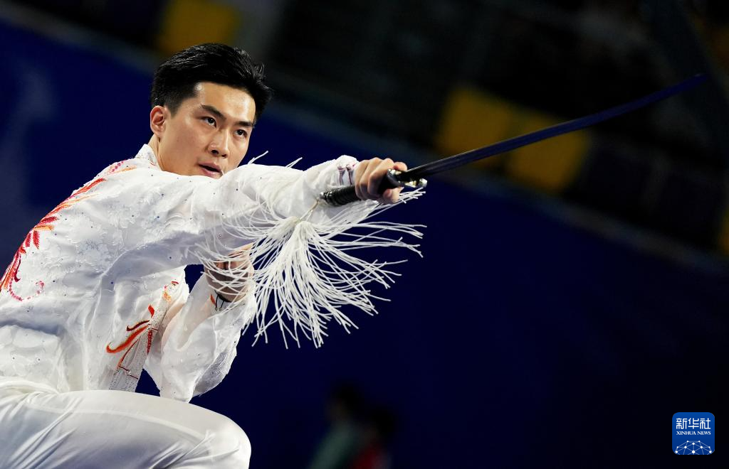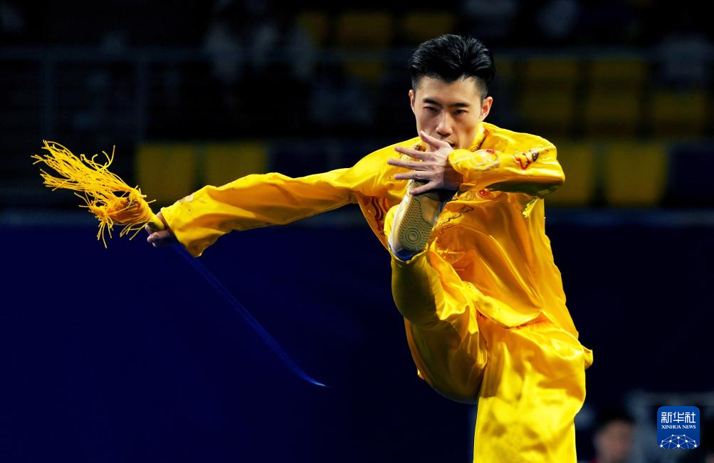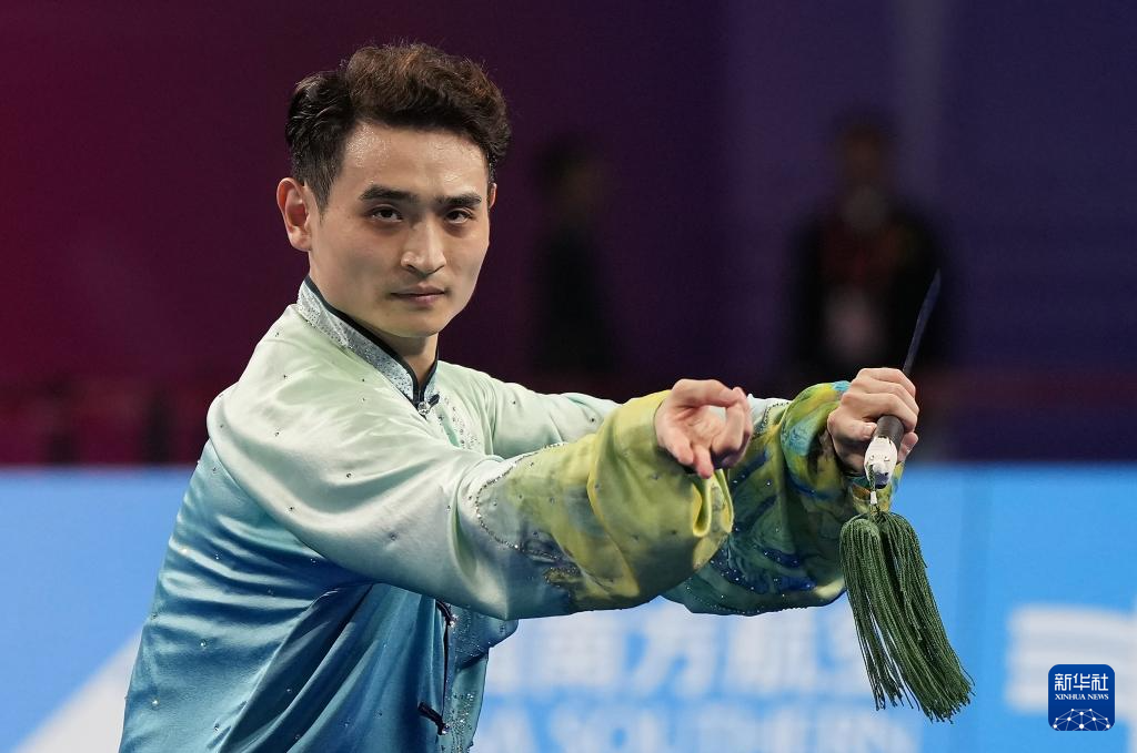 11月8日,山东队选手刘德文在男子太极拳太极剑全能项目太极剑比赛中。最终,他获得冠军。