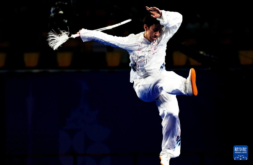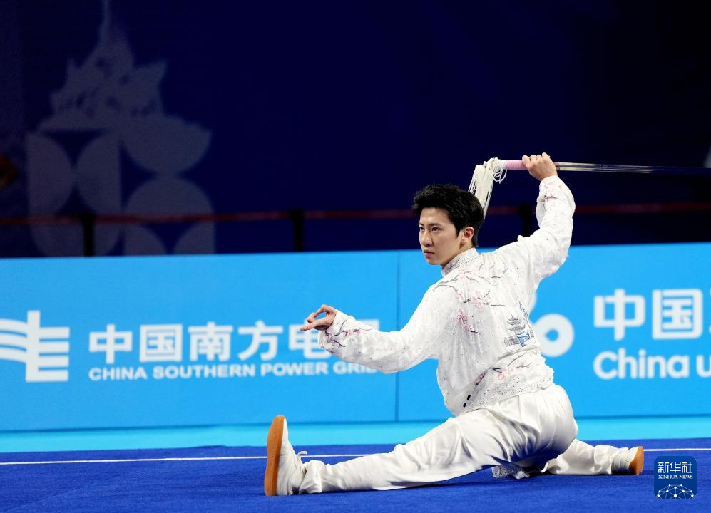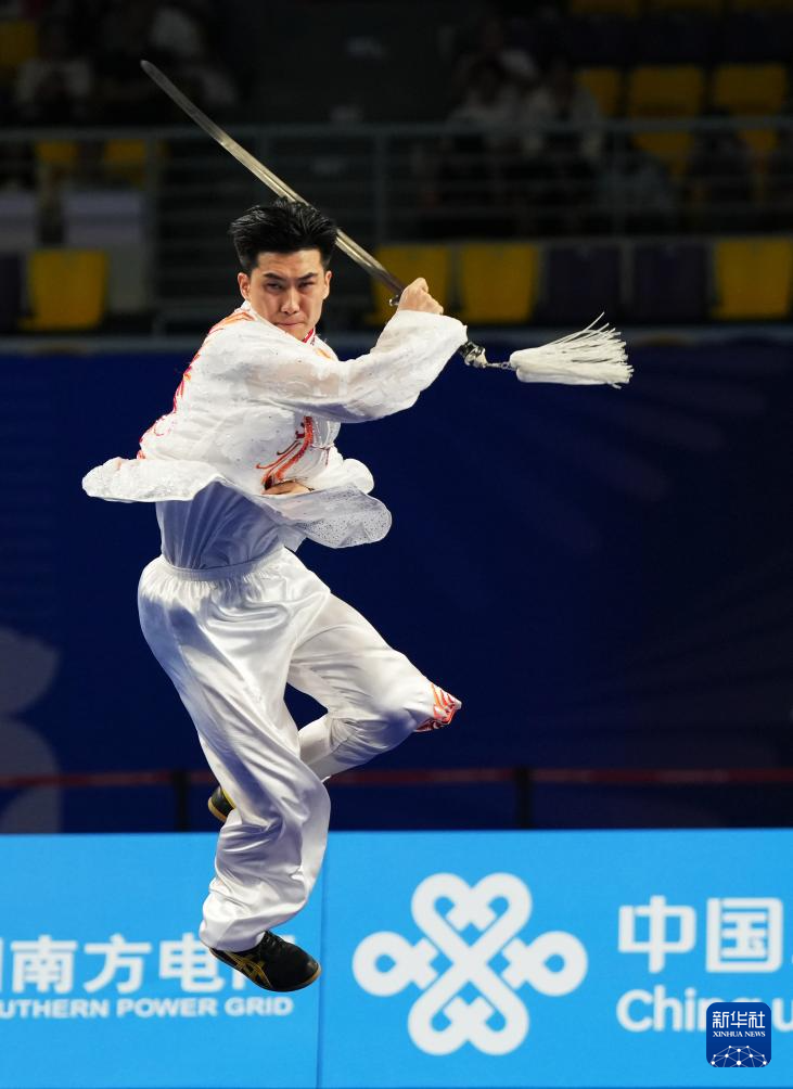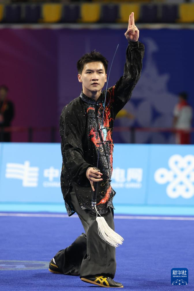 11月8日,福建队选手高浩楠在男子太极拳太极剑全能项目太极剑比赛中。最终,他获得第九名。