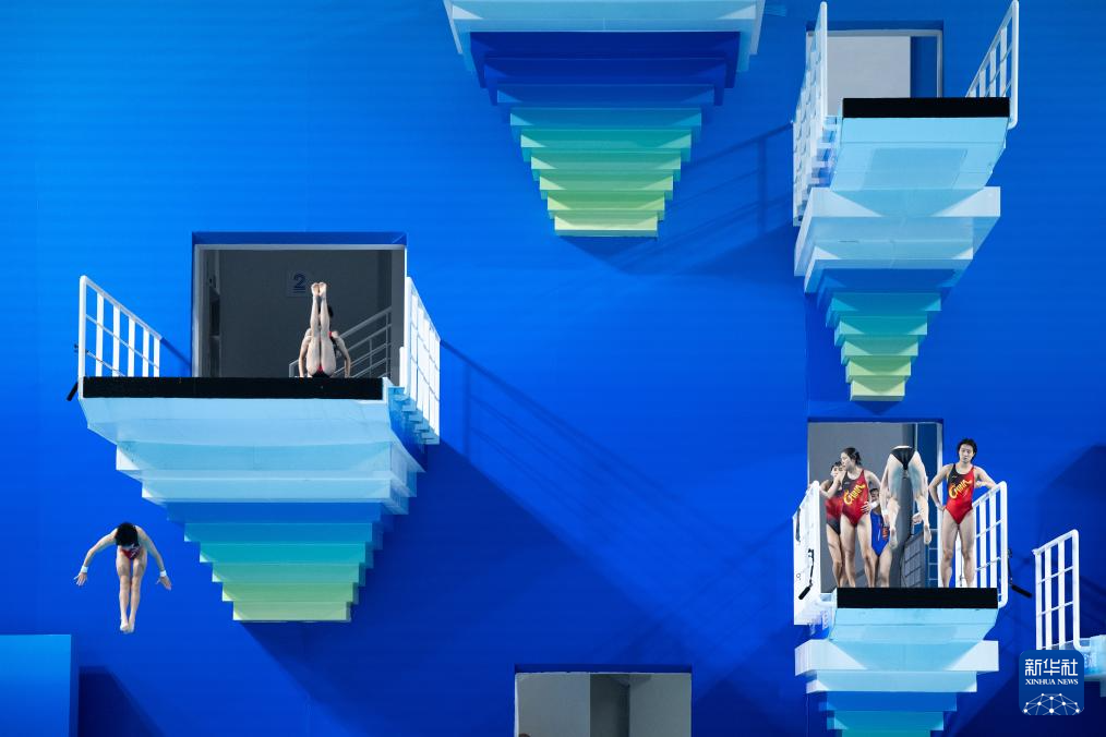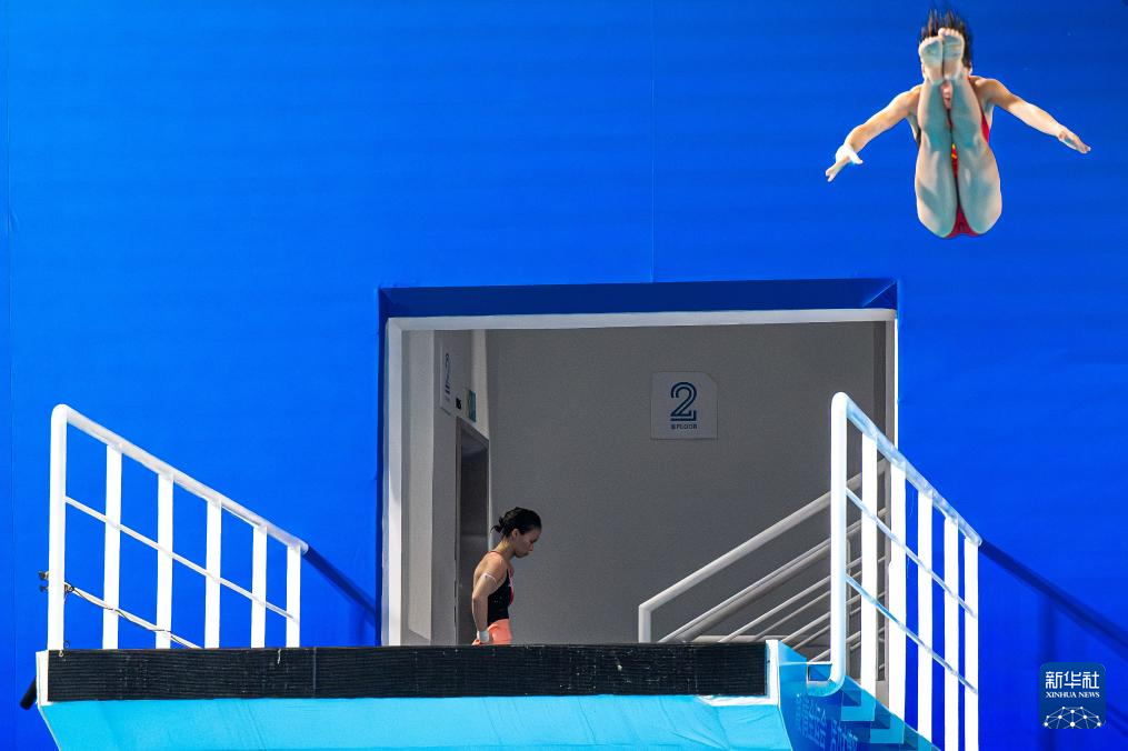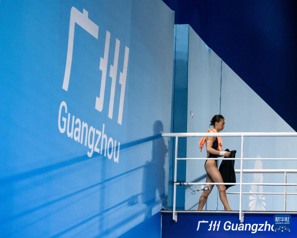 当日,第十五届全国运动会跳水女子10米跳台半决赛在广州举行。