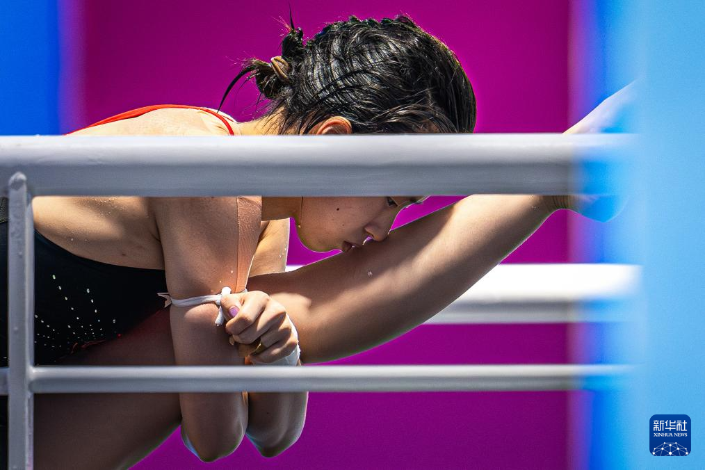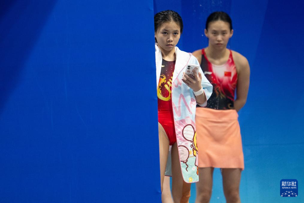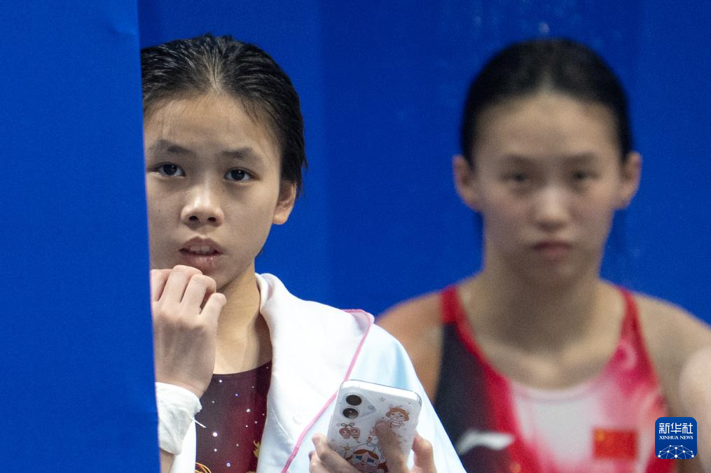 11月8日,上海队选手陈芋汐(左)在赛前热身。最终,她以423.7分的成绩晋级决赛。