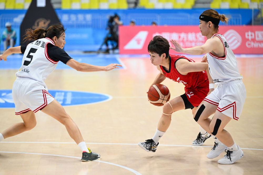 11月9日,山西队球员张亚琪(中)在比赛中突破。新华社记者 邹竞一 摄
