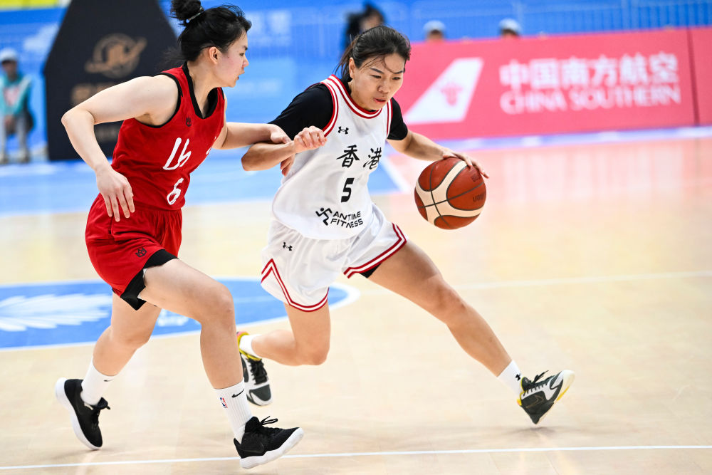11月9日,香港队球员张楚盈(右)在比赛中突破。新华社记者 邹竞一 摄