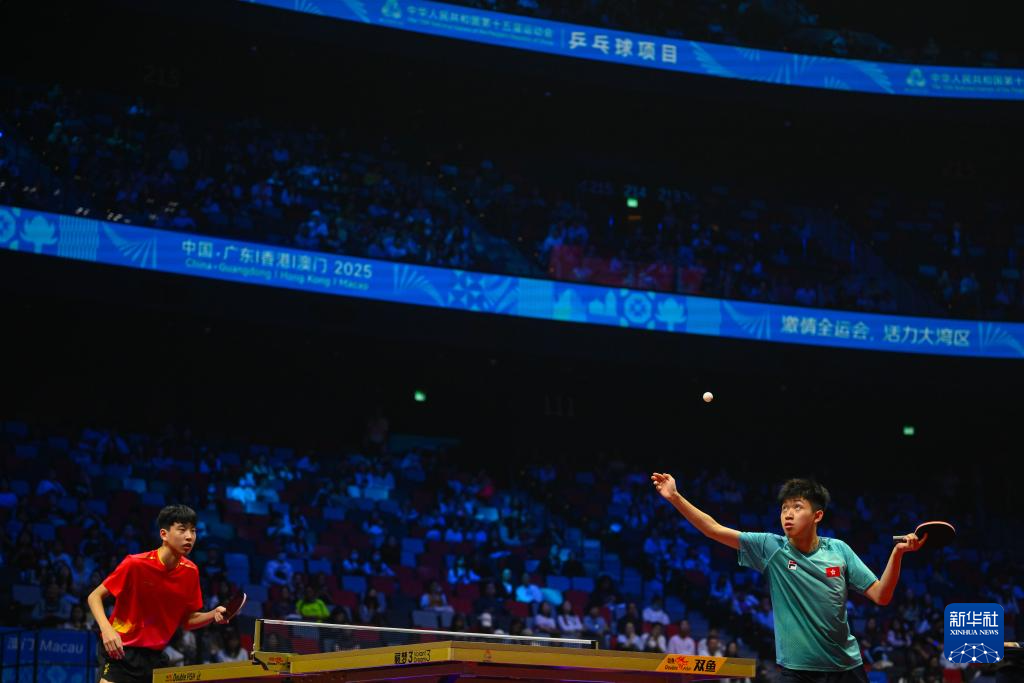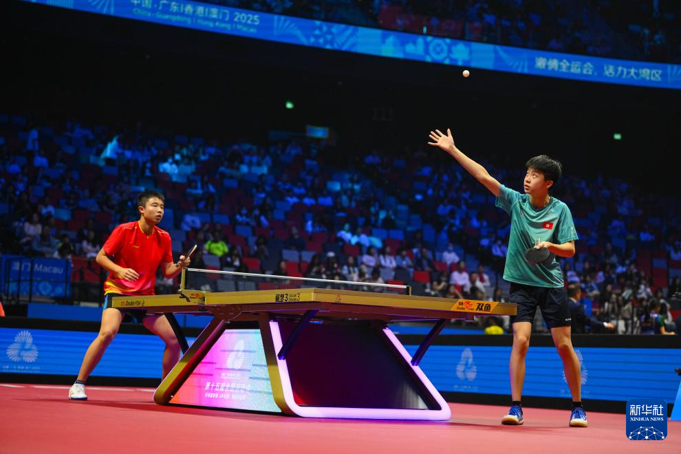当日,在澳门举行的第十五届全国运动会乒乓球男子18岁以下团体赛小组赛D组比赛中,辽宁队3比1战胜香港队。