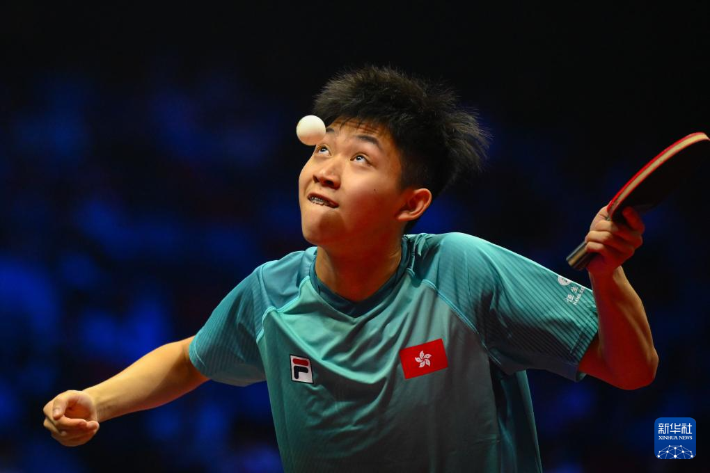 11月9日,香港队选手罗嘉杰在比赛中回球。他0比3不敌辽宁队选手曲泓运。
