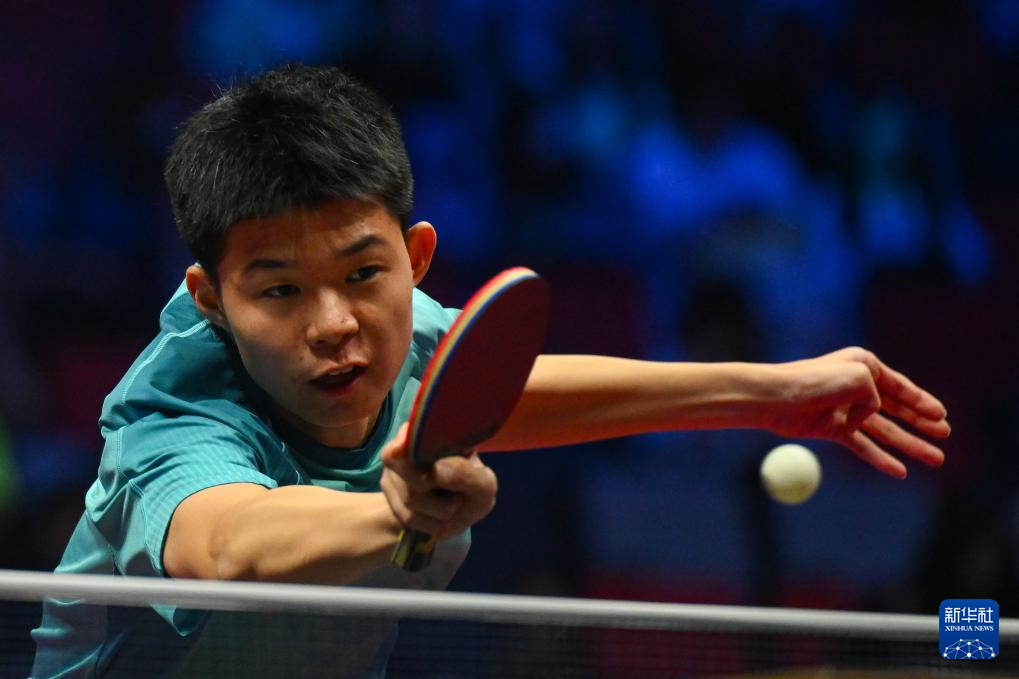 11月9日,辽宁队选手李和宸在单打比赛中回球。他3比0战胜香港队选手王昀希。