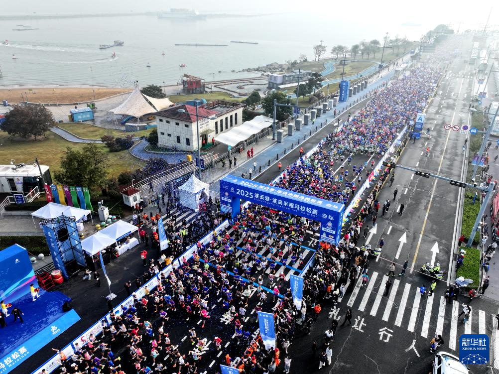 当日,2025连云港·连岛半程马拉松赛在江苏省连云港市鸣枪开跑。