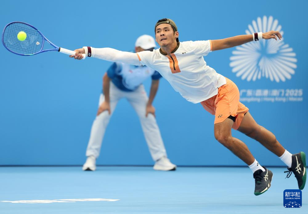 11月9日,澳门队选手何锶朗在单打比赛中回球。他0比2不敌湖北队选手丁川。最终,澳门队0比2不敌湖北队,无缘下一轮。