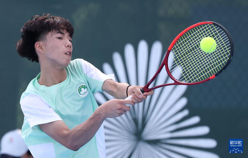 当日,第十五届全国运动会网球青年组男子团体第1轮比赛在横琴举行。