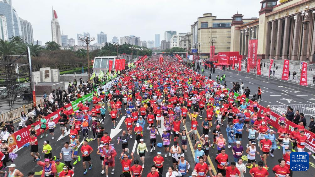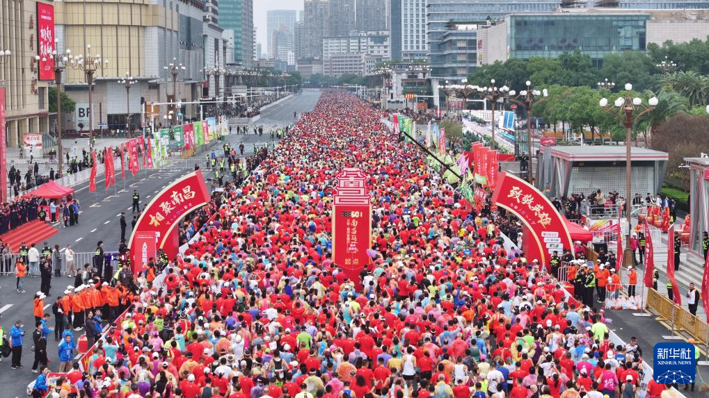 当日,2025南昌马拉松在南昌八一广场开跑,约有32000名跑者参与本次比赛。