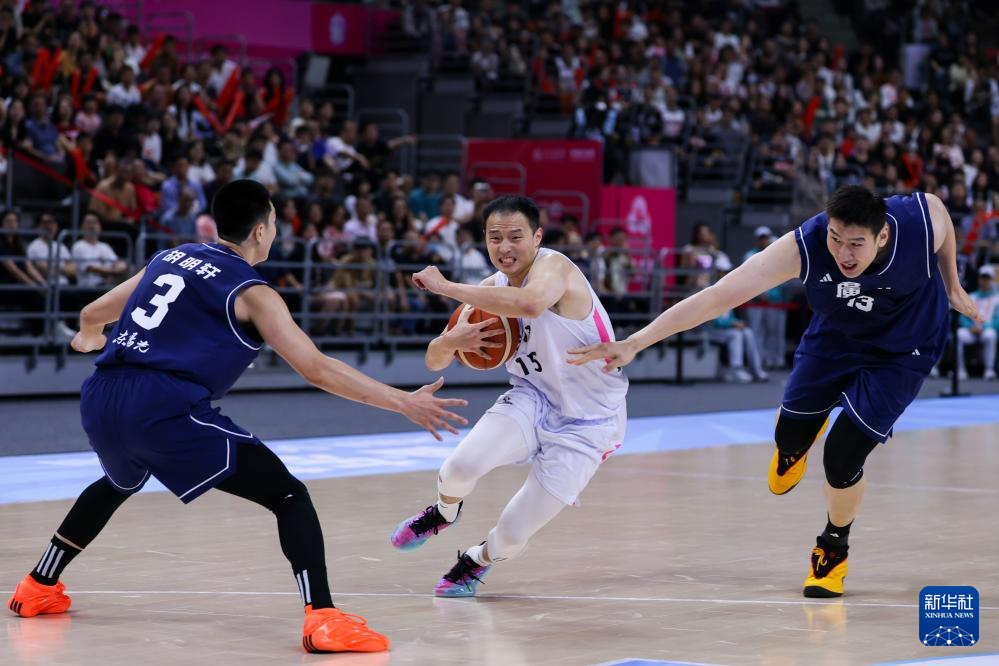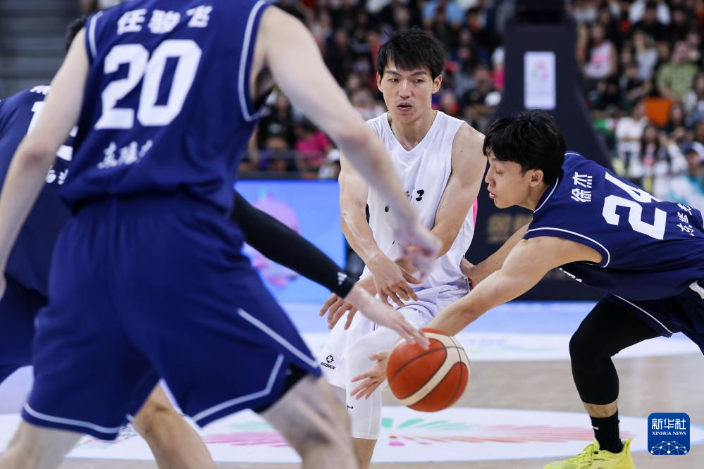 11月8日,浙江队球员王奕博(中)在比赛中突破。