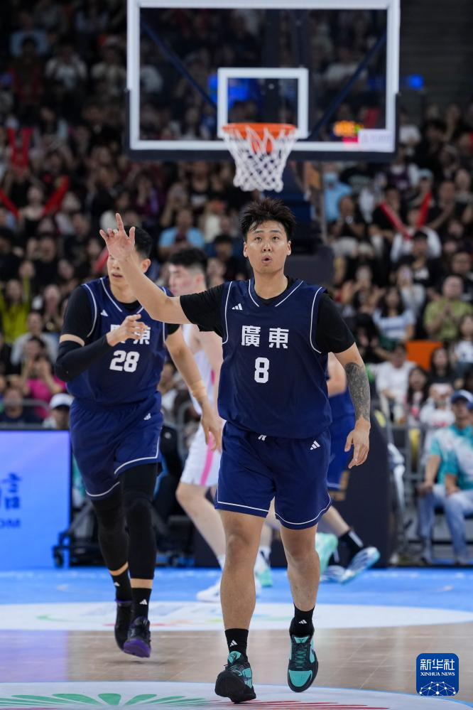 11月8日,广东队球员赵睿(前)在比赛中庆祝得分。