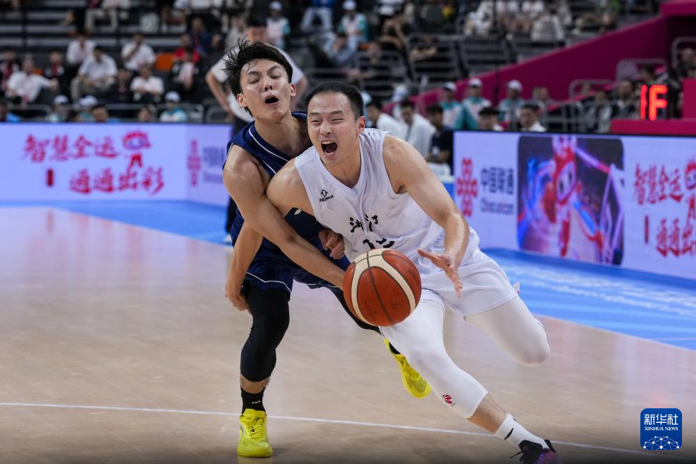 11月8日,浙江队球员王奕博(右)在比赛中突破。