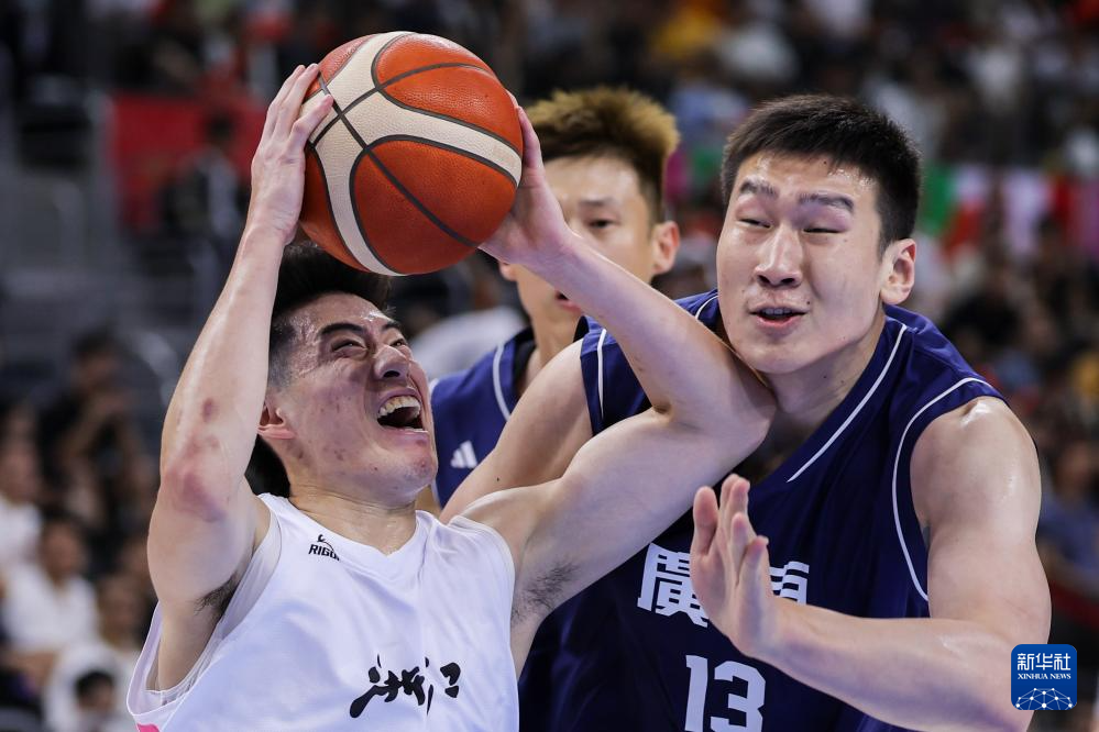 11月8日,浙江队球员余嘉豪(前左三)在比赛中扣篮。