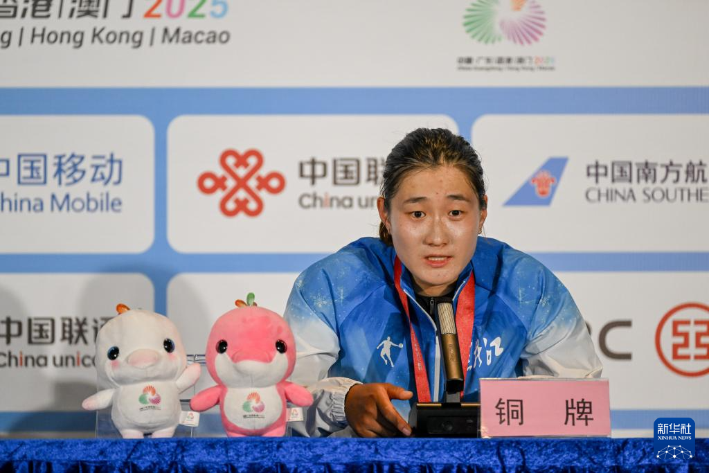 11月9日,季军黑龙江队选手冯琳在赛后新闻发布会上接受采访。