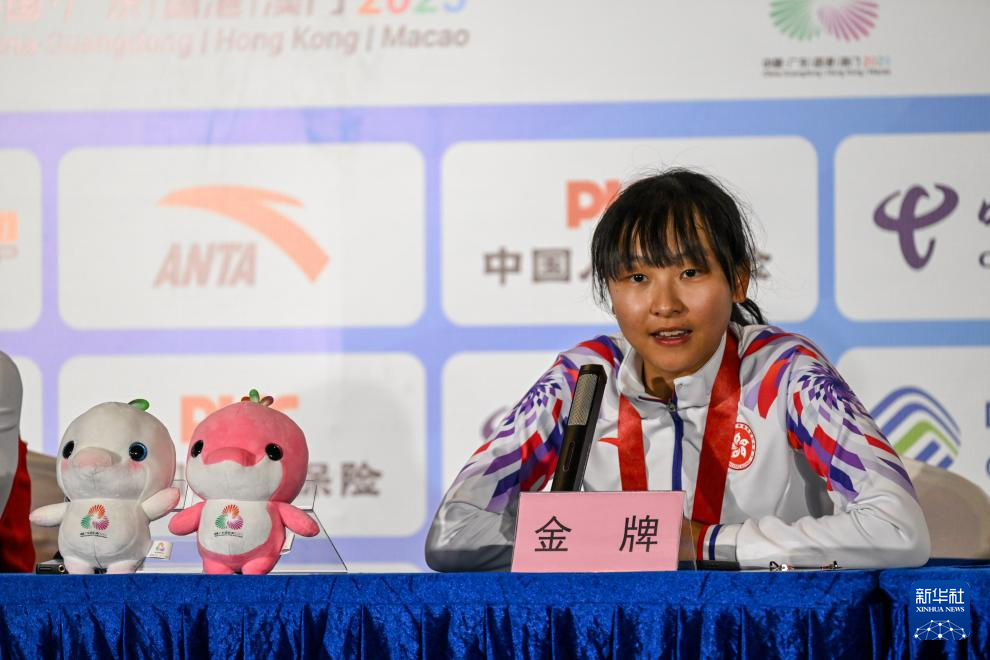 11月9日,冠军香港队选手李思颖在赛后新闻发布会上接受采访。