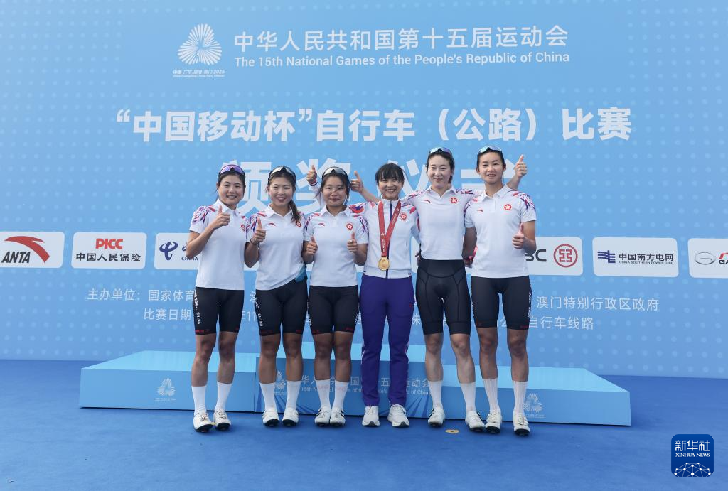11月9日,冠军香港队选手李思颖(右三)与队友在颁奖仪式上合影庆祝。