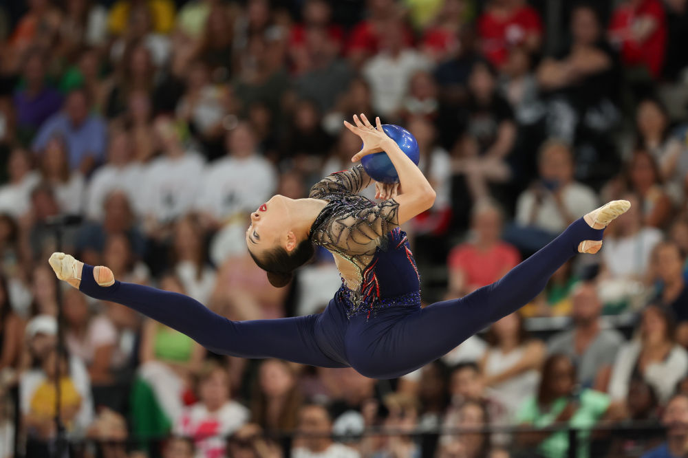 2024年8月9日,在巴黎奥运会艺术体操个人全能决赛中,中国选手王子露获得第七名。新华社记者 许雅楠 摄