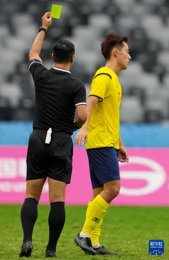 11月11日,主裁判在比赛中向四川队球员方培丞出示黄牌。