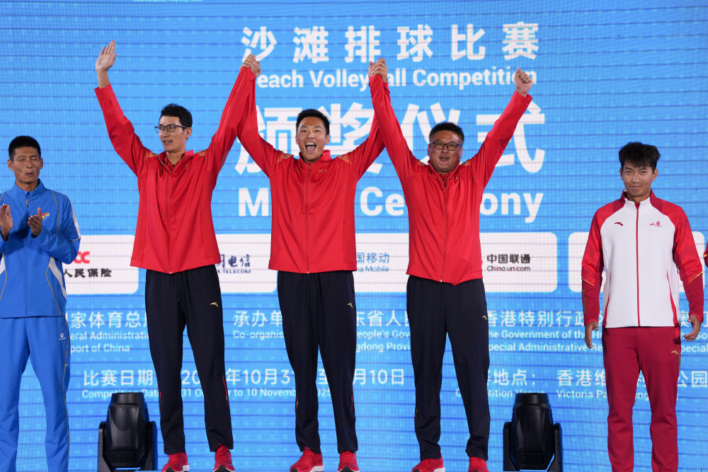 沙排男子决赛现场气氛热烈,现场音乐响起,看台上许多观众跟随着节奏,纷纷挥舞起手中的手机。江苏旅客赵小姐表示,她特意来香港观看全运会赛事,香港的赛场充满活力,能在这样的氛围中感受全运魅力,是一次非常特殊的体验。