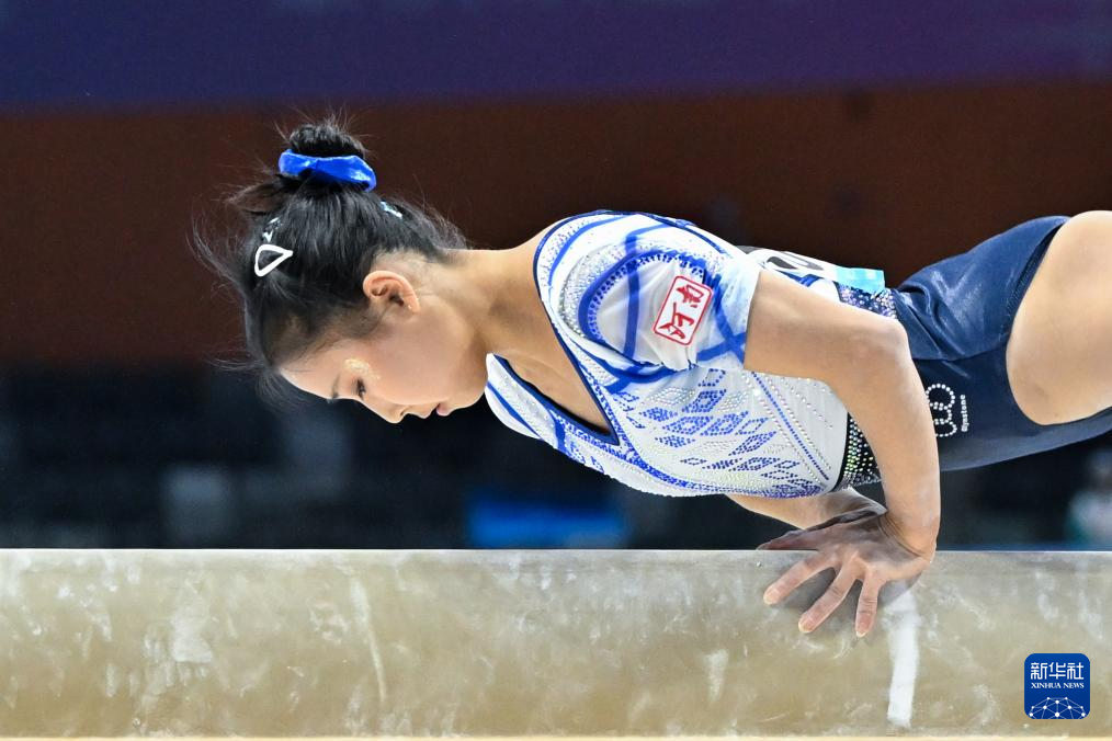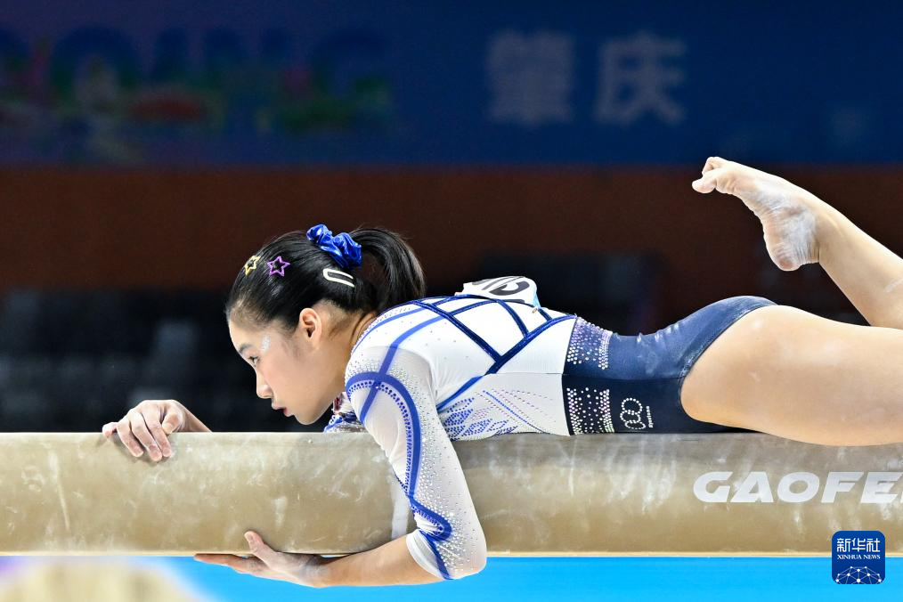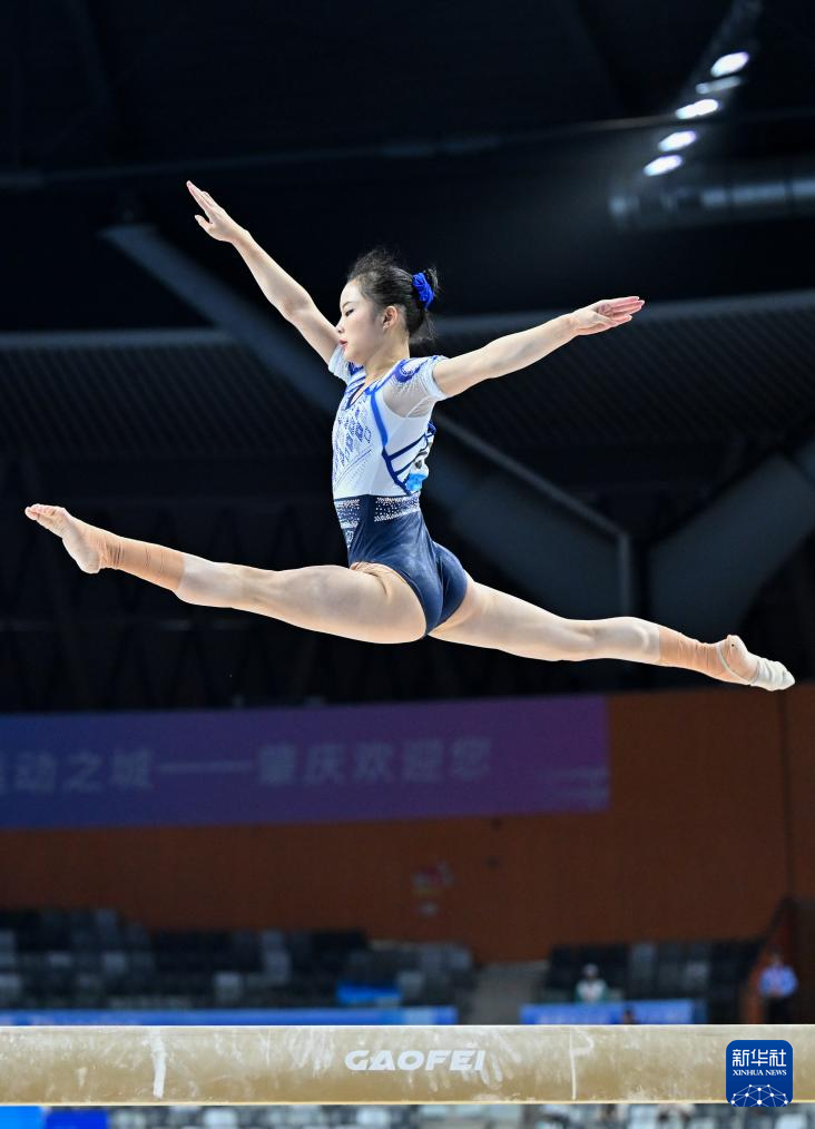11月11日,河南队选手张怡涵在平衡木比赛中。