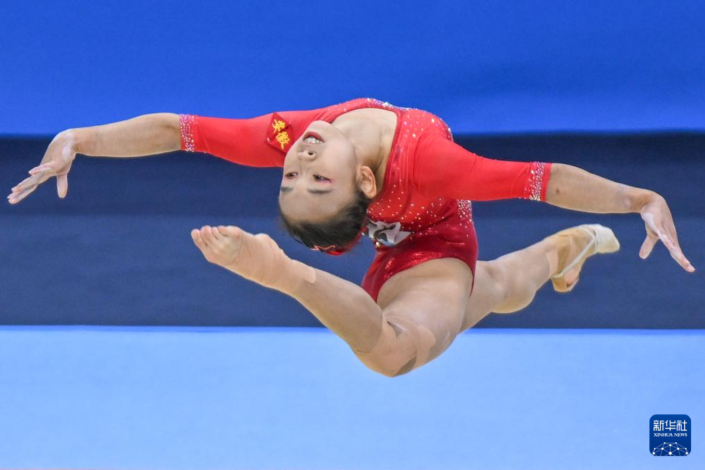 11月11日,安徽队选手汤惠钧在自由操比赛中。