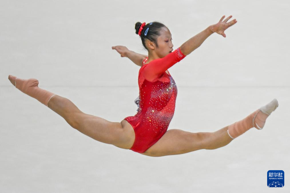 11月11日,安徽队选手谢谷英在自由操比赛中。