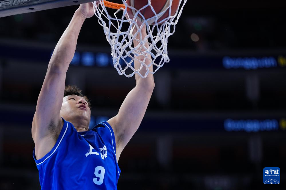 11月11日,上海队球员闫鹏飞在比赛中扣篮。
