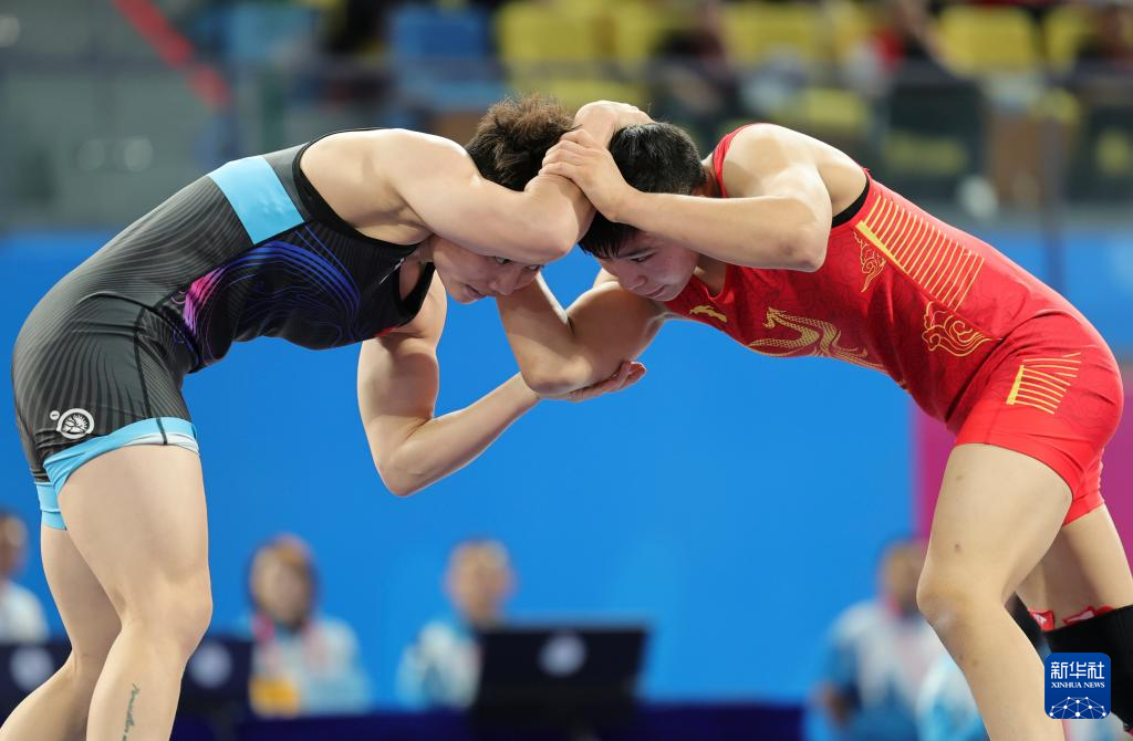 当日,第十五届全国运动会摔跤女子自由式53公斤级决赛和铜牌赛在清远举行。