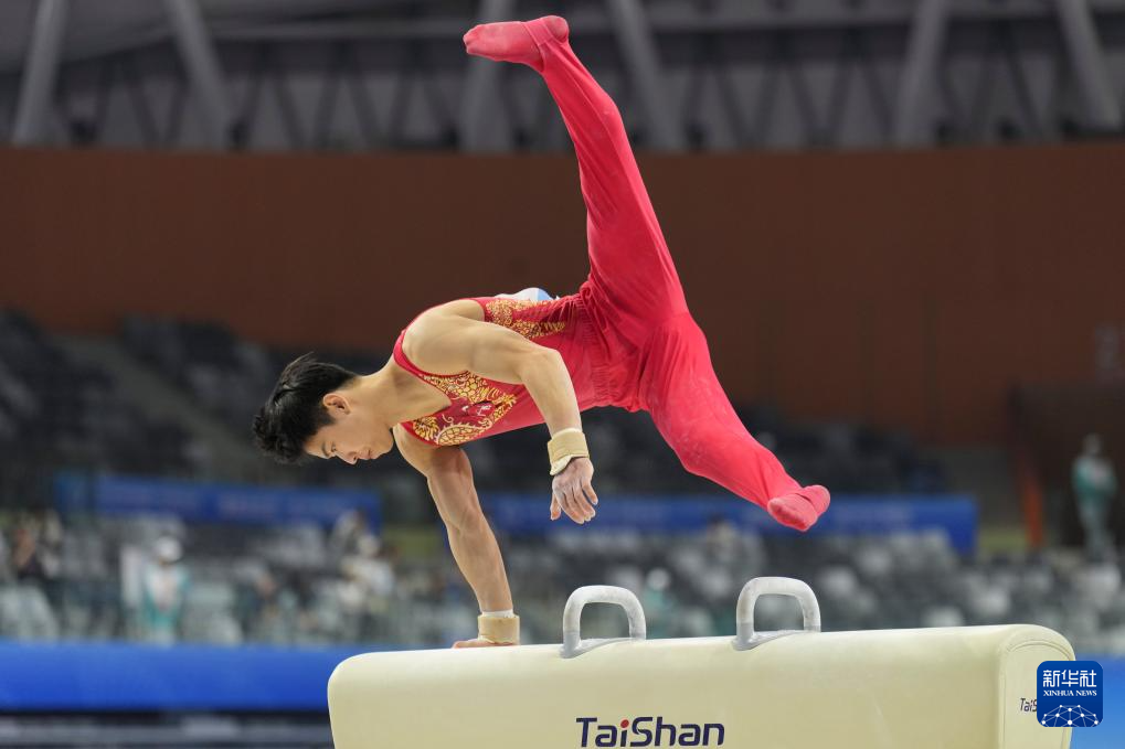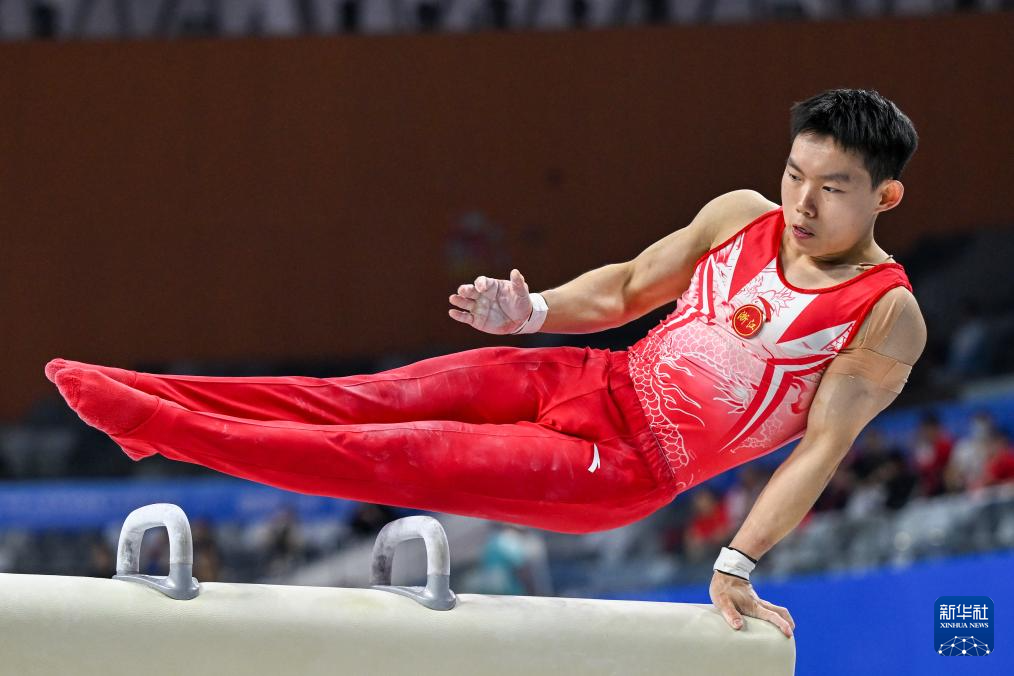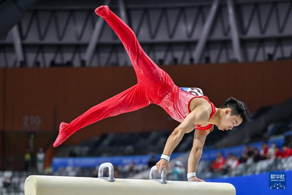 11月10日,广西队选手胡旭威在鞍马比赛中。