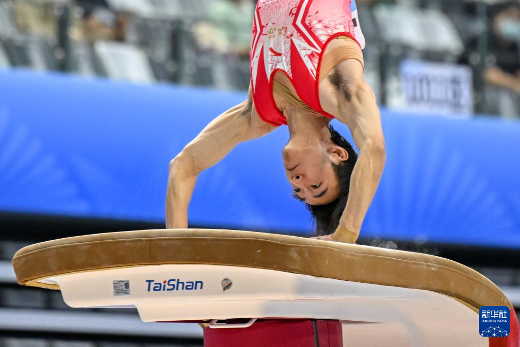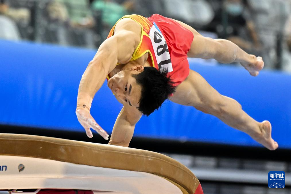 11月10日,江苏队选手胡又天在跳马比赛中。