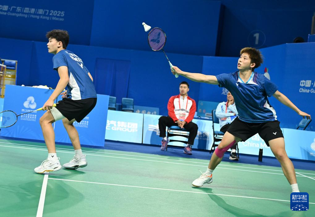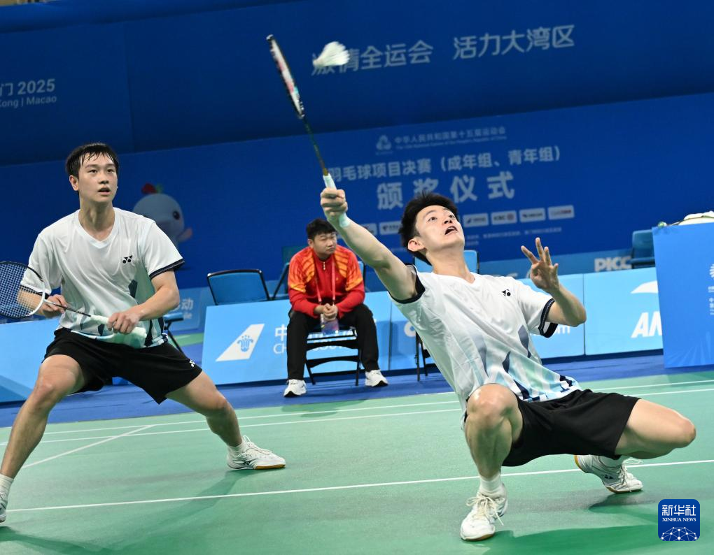 11月10日,江西队组合王鹏程(右)/陈俊霖在男双比赛中回球。他们0比2不敌安徽队组合刘阳/于奥键。