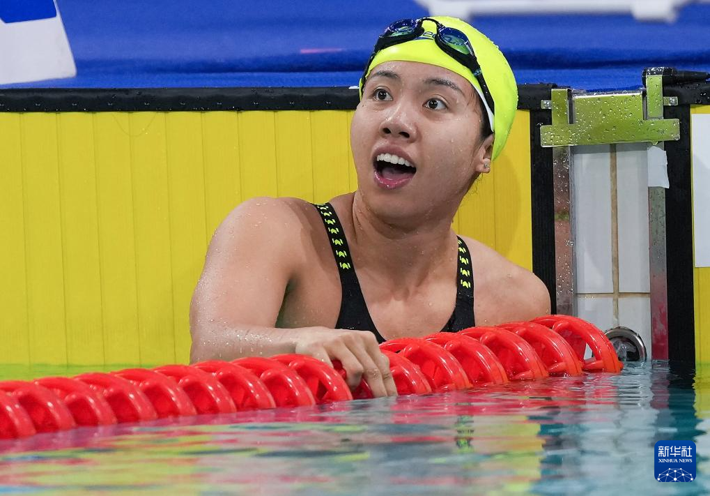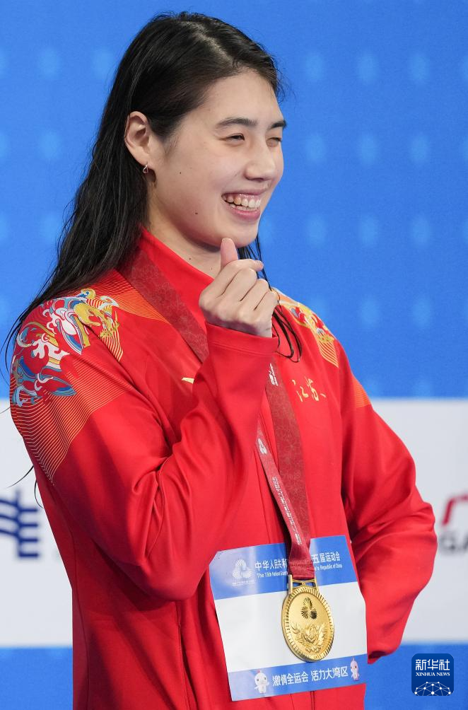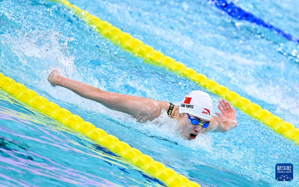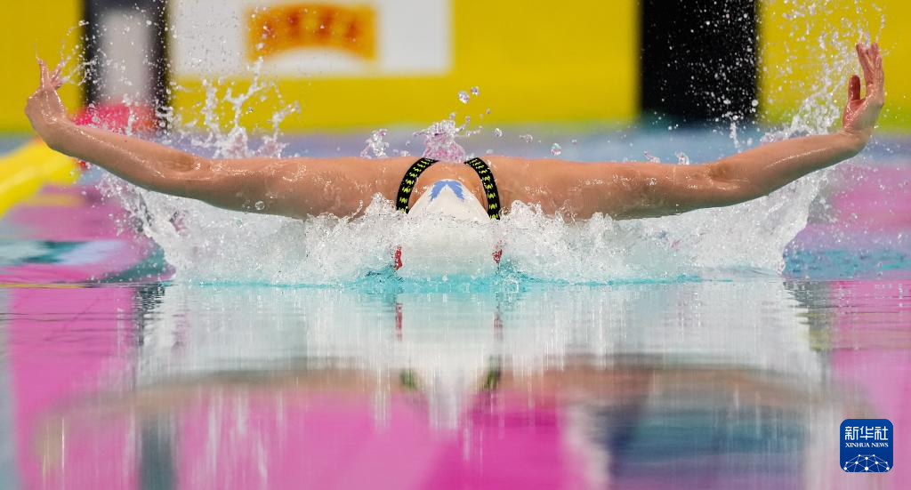 当日,第十五届全国运动会游泳女子100米蝶泳决赛在深圳举行。
