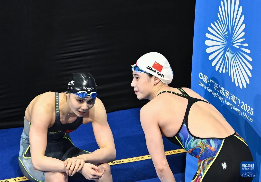 11月11日,江苏队选手张雨霏(右)与山东队选手王一淳在比赛前。最终,她们分别获得冠军、亚军。