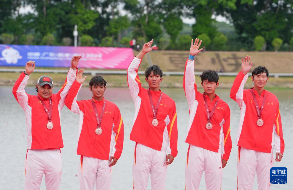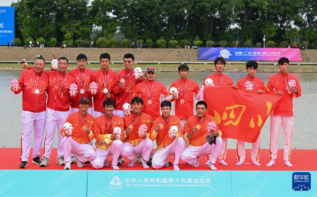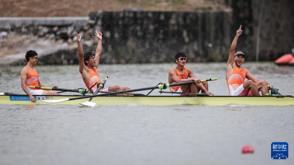 当日,第十五届全国运动会赛艇项目男子四人单桨决赛在广州举行。