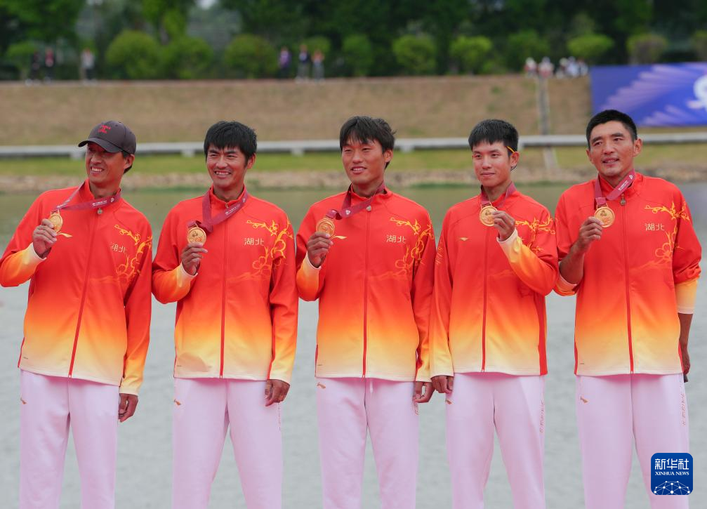 11月11日,冠军湖北队选手和教练员在颁奖仪式上合影。
