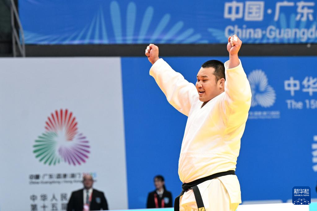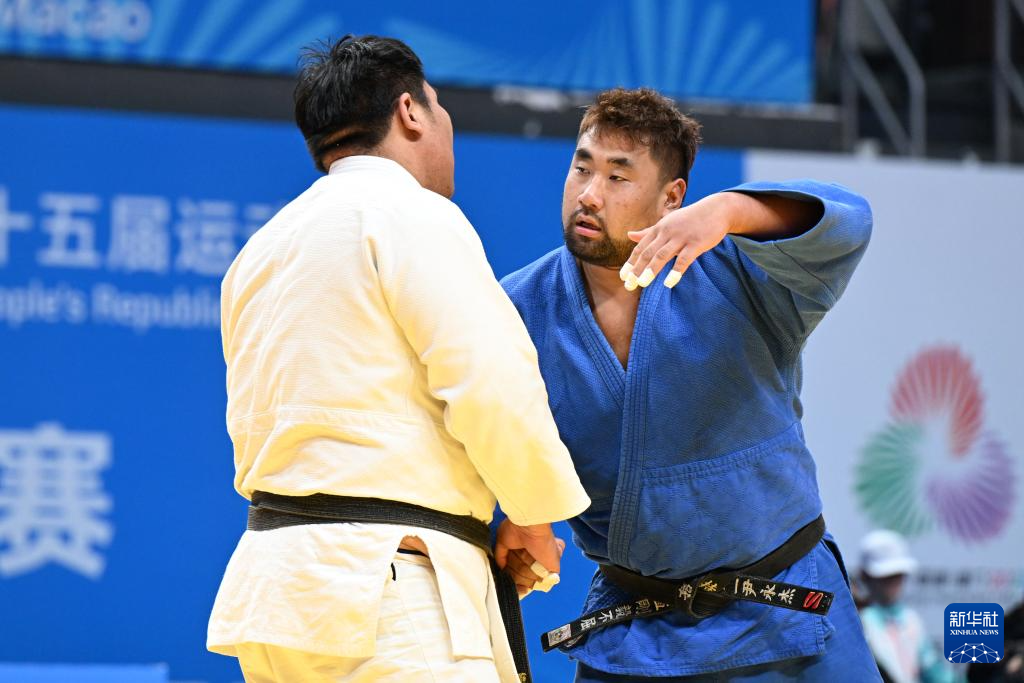 当日,第十五届全国运动会柔道项目男子100公斤以上级金牌赛和铜牌赛在肇庆举行。