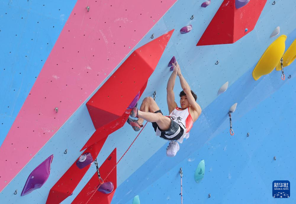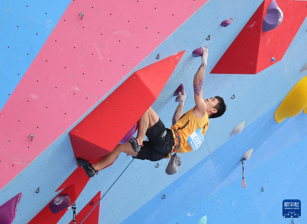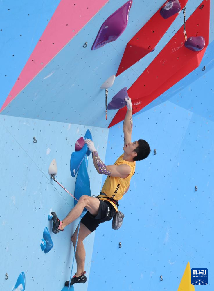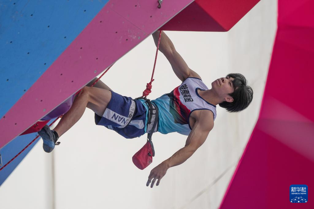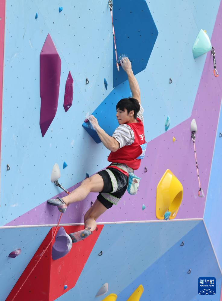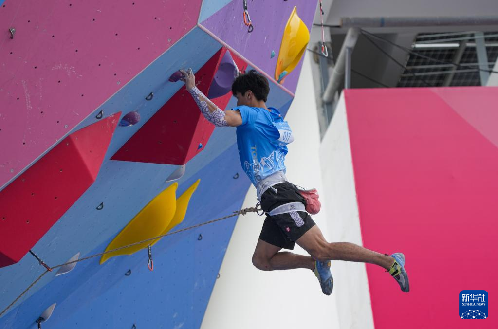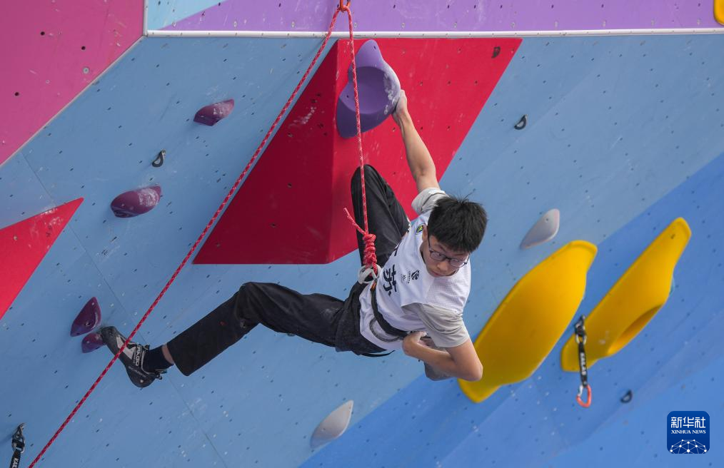 当日,第十五届全国运动会攀岩项目男子难度预赛在广州举行。
