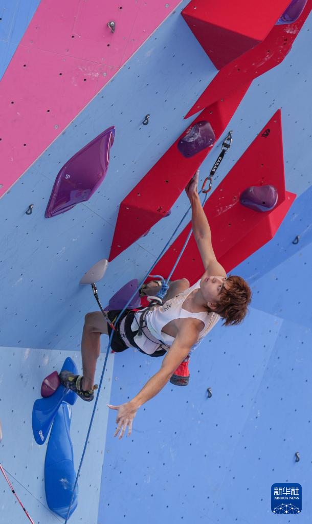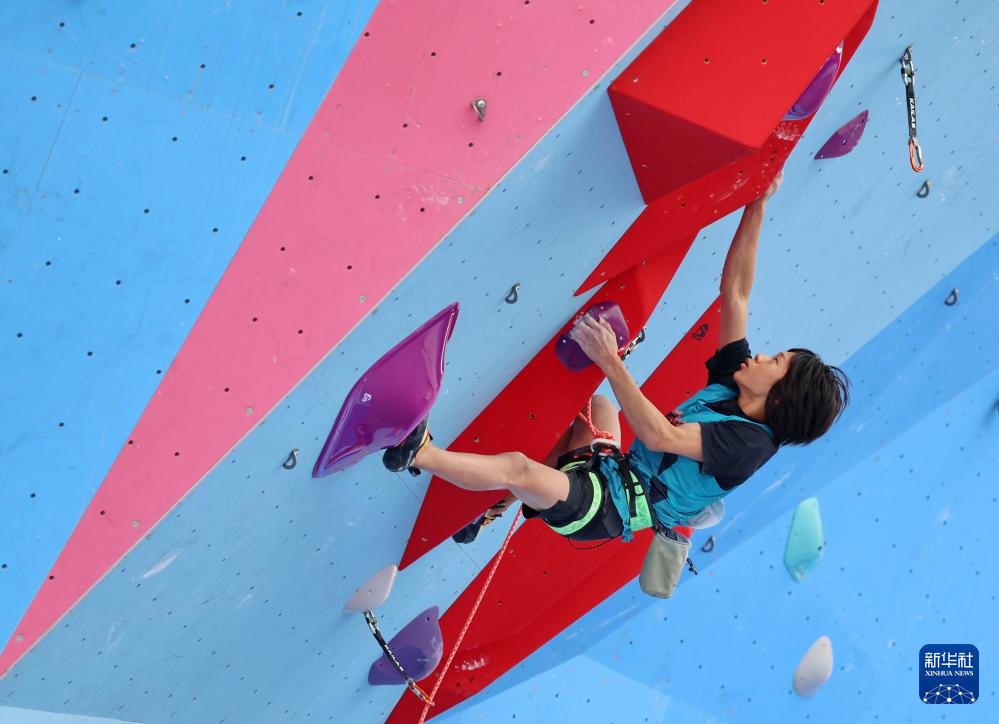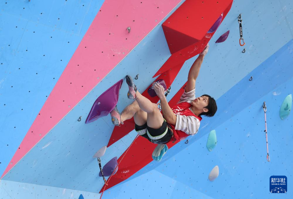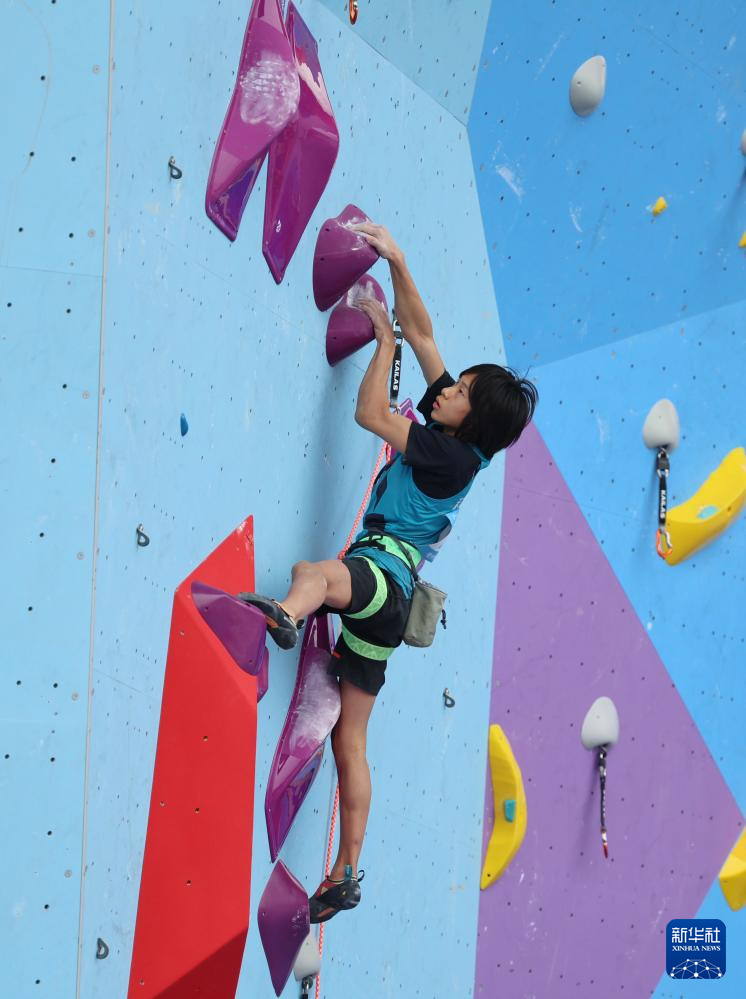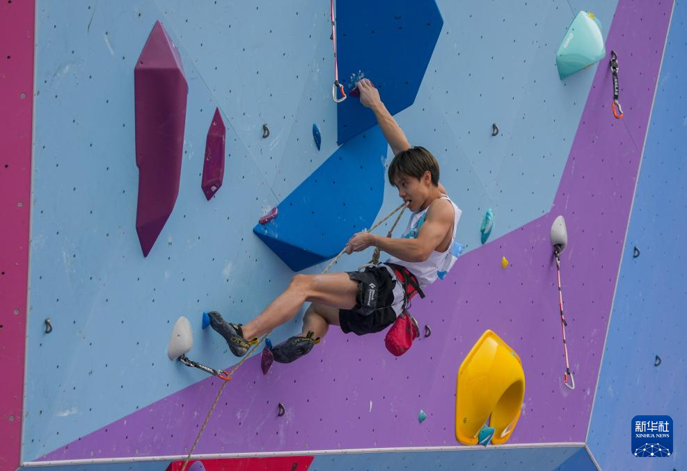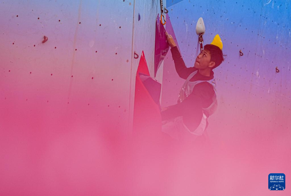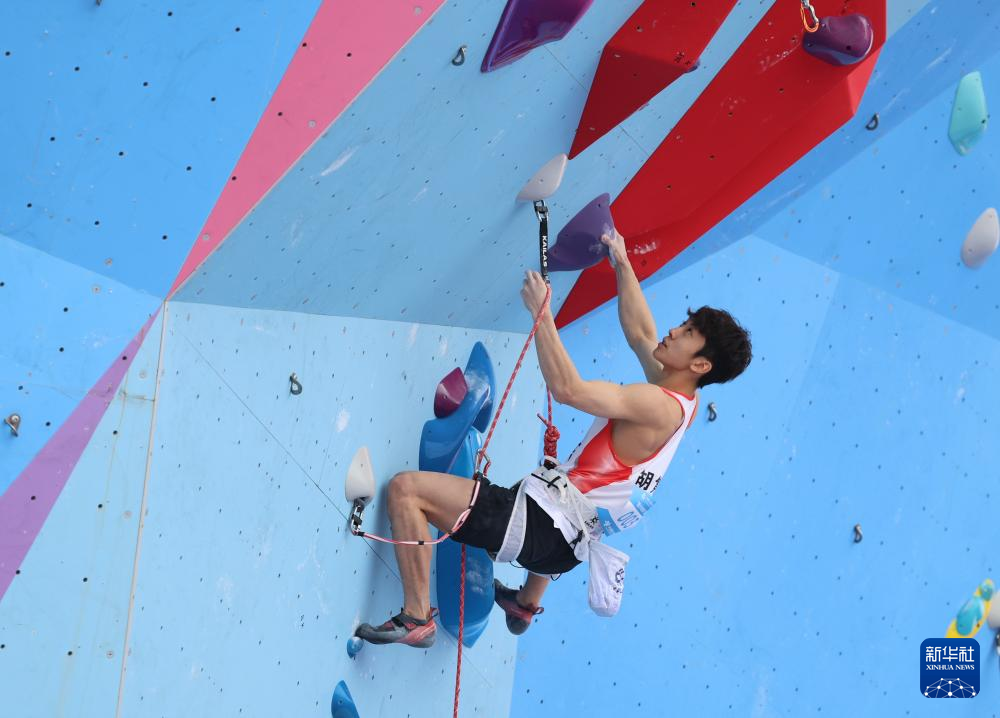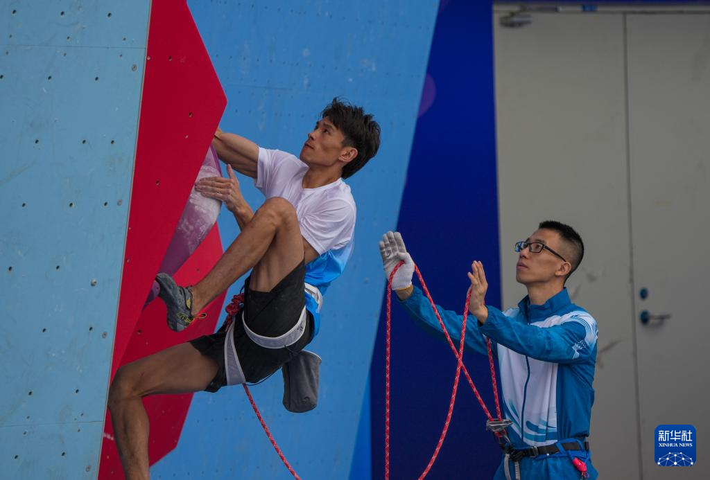 当日,第十五届全国运动会攀岩项目男子难度预赛在广州举行。