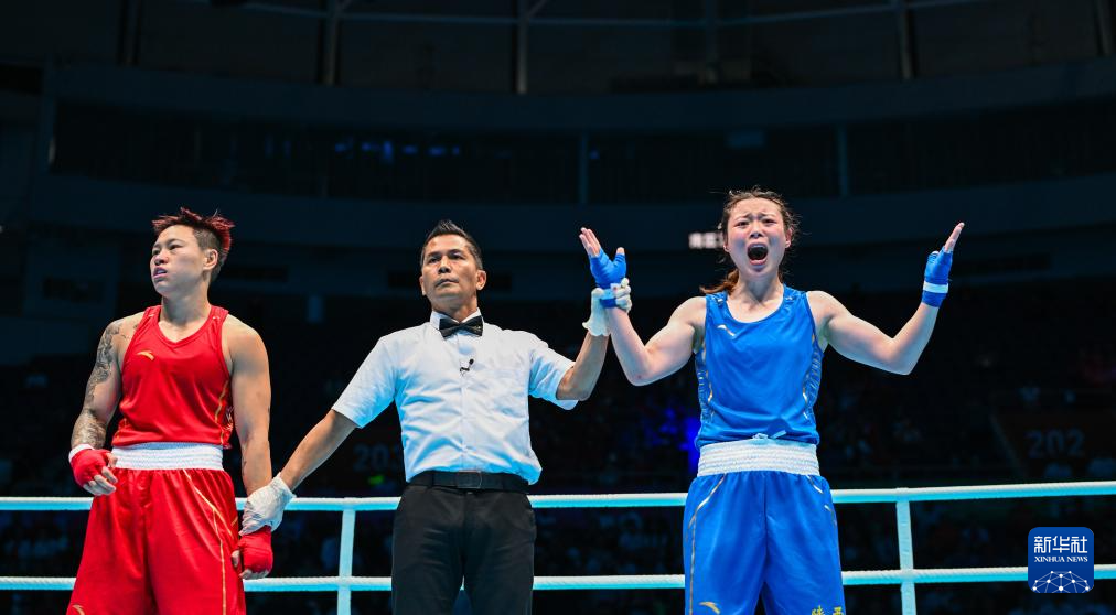当日,在深圳举行的第十五届全国运动会拳击女子60公斤级决赛中,陕西队选手陈姿伊战胜贵州队选手杨成宇,获得冠军。