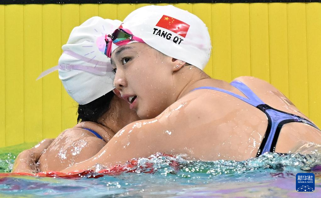 11月12日,上海队选手唐钱婷(右)和队友宋梓欣在比赛后拥抱致意。她们分别获得冠军、季军。