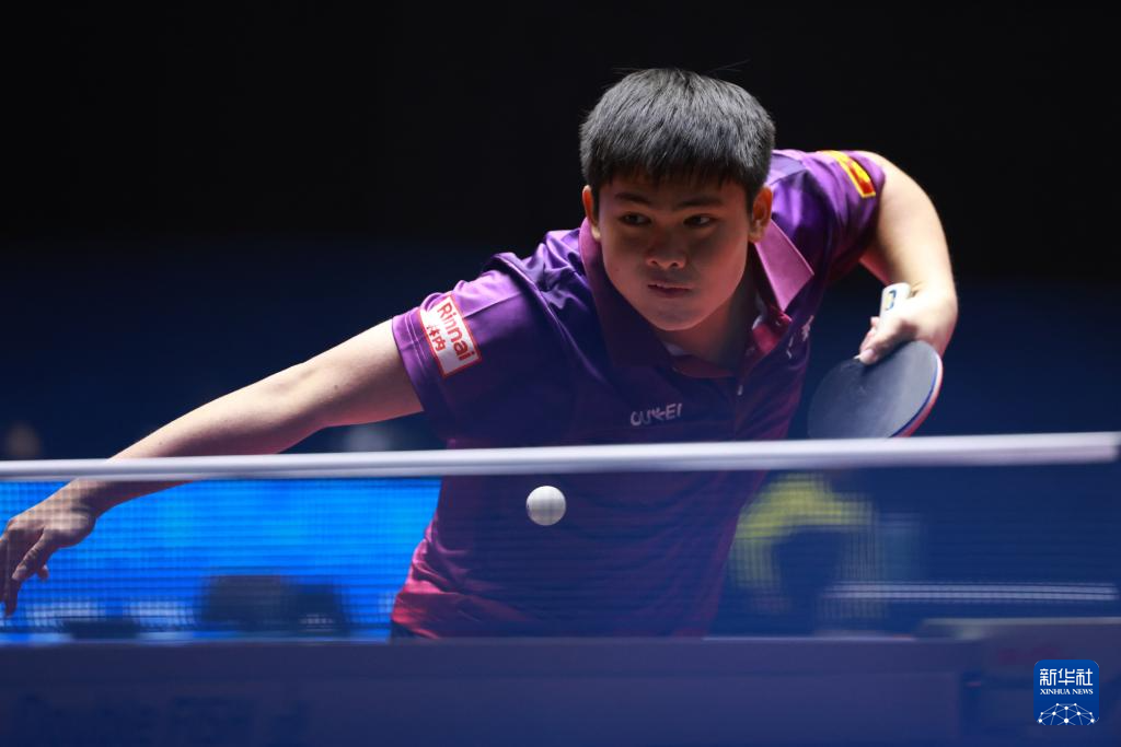 11月12日,上海队选手伍毅菲在比赛中回球。