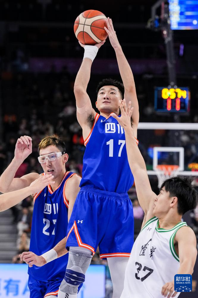 11月12日,四川队球员孙铭徽(上)在比赛中投篮。