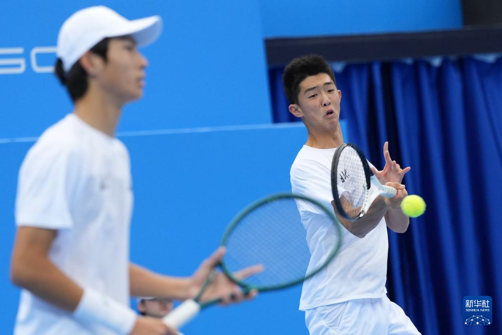 11月12日,北京队组合宋雨桥/张博雄(左)在比赛中。他们在双打比赛中对阵江苏队组合陈显峰/徐旷清。