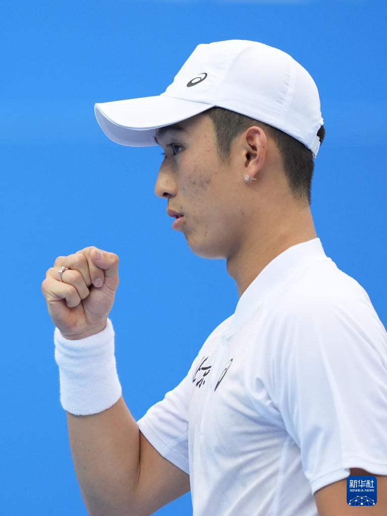 11月12日,江苏队选手胡佳在比赛后庆祝。他在单打比赛中2比0战胜北京队选手齐洪瑾。