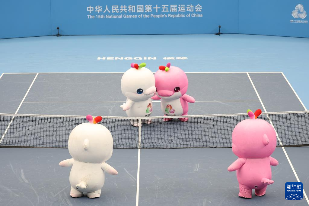 11月12日,第十五届全国运动会吉祥物“喜洋洋”“乐融融”在比赛间隙表演。