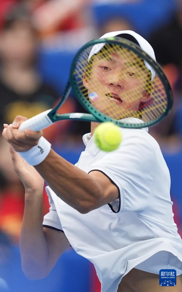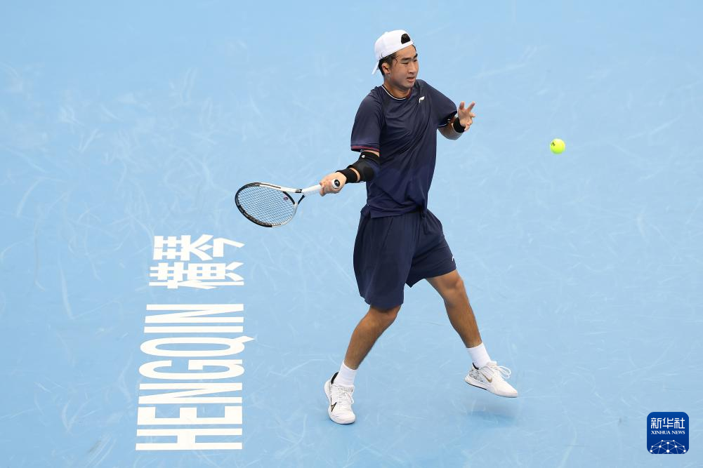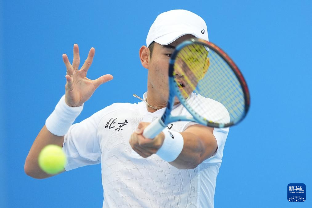 11月12日,北京队选手齐洪瑾在比赛中回球。他在单打比赛中对阵江苏队选手胡佳。
