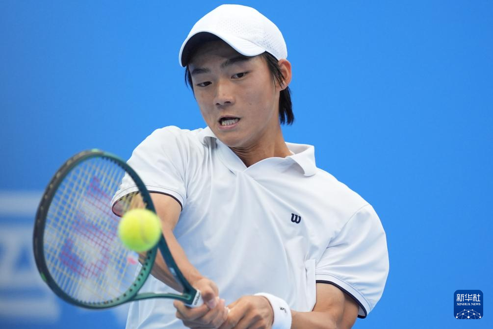 11月12日,北京队选手齐洪瑾在比赛中回球。他在单打比赛中0比2不敌江苏队选手胡佳。