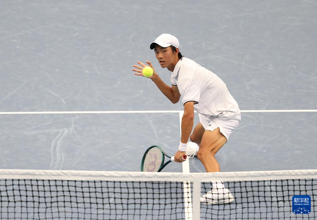 11月12日,北京队选手商竣程在比赛中回球。他在单打比赛中对阵江苏队选手唐锦鹏。
