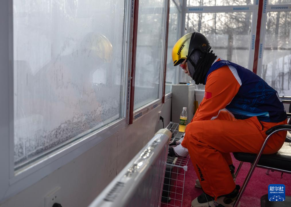 11月6日清晨,自由式滑雪空中技巧国家集训队队员齐广璞在技术训练间隙休息。